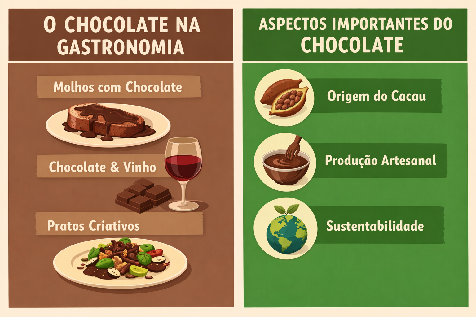 Hoje, o chocolate é utilizado de forma cada vez mais criativa. Para além das receitas tradicionais, como bolos ou mousses, começa a surgir em propostas mais arrojadas.