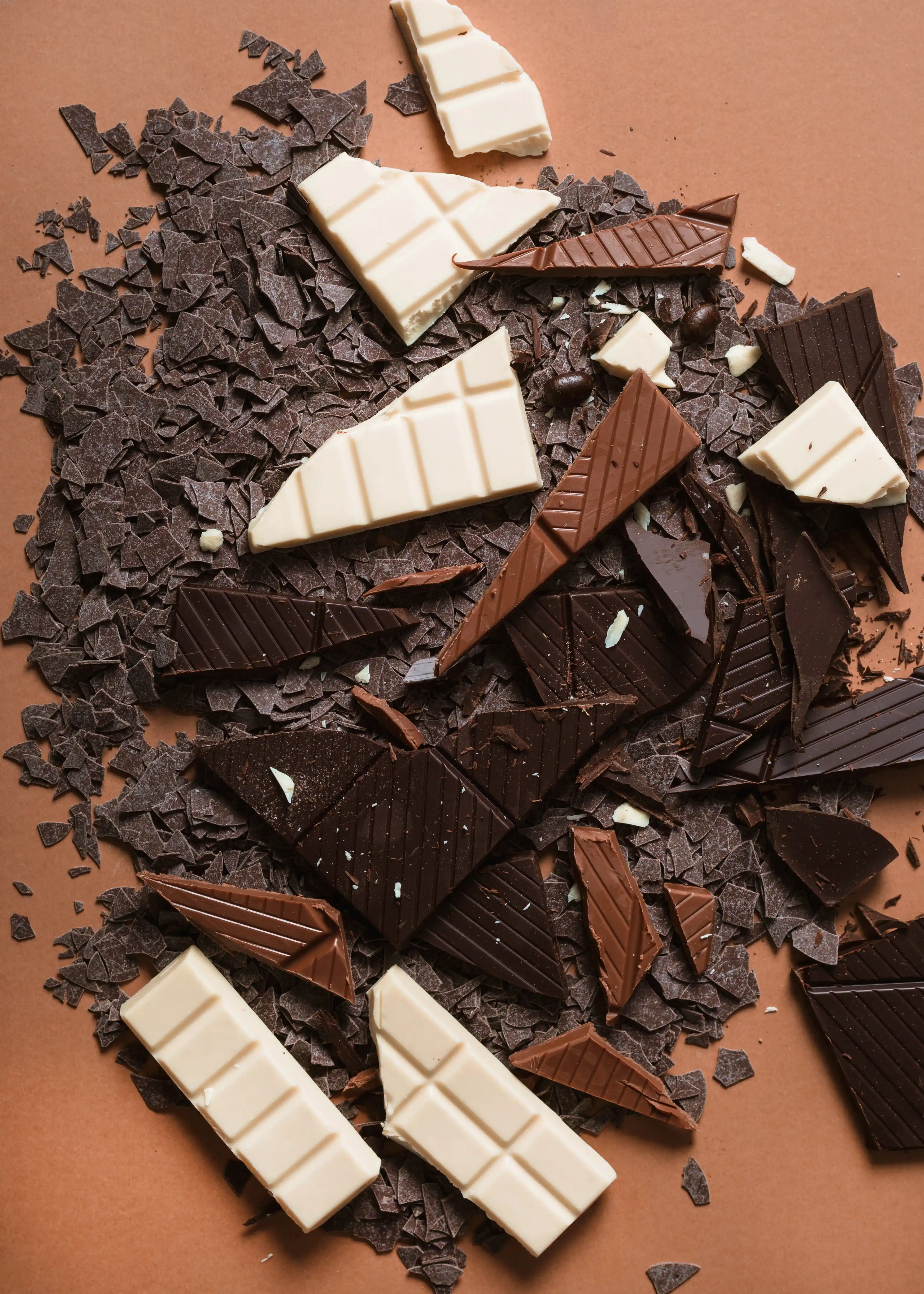 A temperagem é outro indicador de qualidade. É o processo que estabiliza a manteiga de cacau e determina o brilho, a firmeza e a forma como o chocolate derrete na boca. Um chocolate bem temperado apresenta uma superfície lisa e brilhante, parte com um som seco e agradável, e derrete de forma uniforme. Quando o chocolate fica baço ou com manchas brancas, não está estragado, mas pode ter sido mal temperado ou armazenado em condições inadequadas.